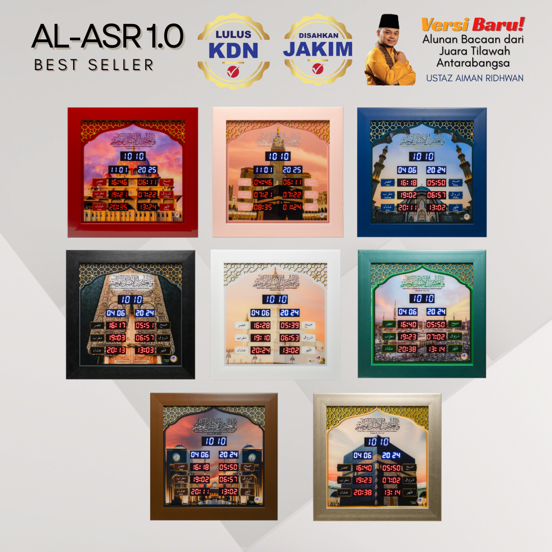 On 1st Rejab 1445H, 2024 marks another historical achievement for our company. We launched our own version and brand of Digital Azan Clock Al-Asr. It contain prayer time as issued by JAKIM, zikir, selected hadith and various other functions that we developed in house.