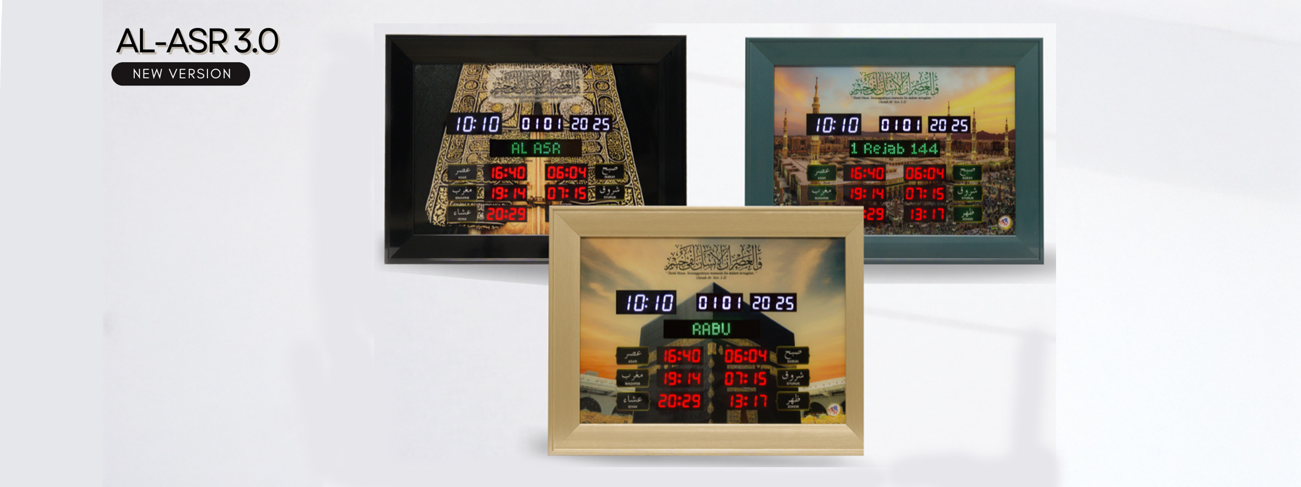 On 1st Rejab 1446H, We launched our latest and much improved version of Digital Azan Clock, Al-Asr 3.0. It is an upgraded version of the previous 2 models with additional functions.
